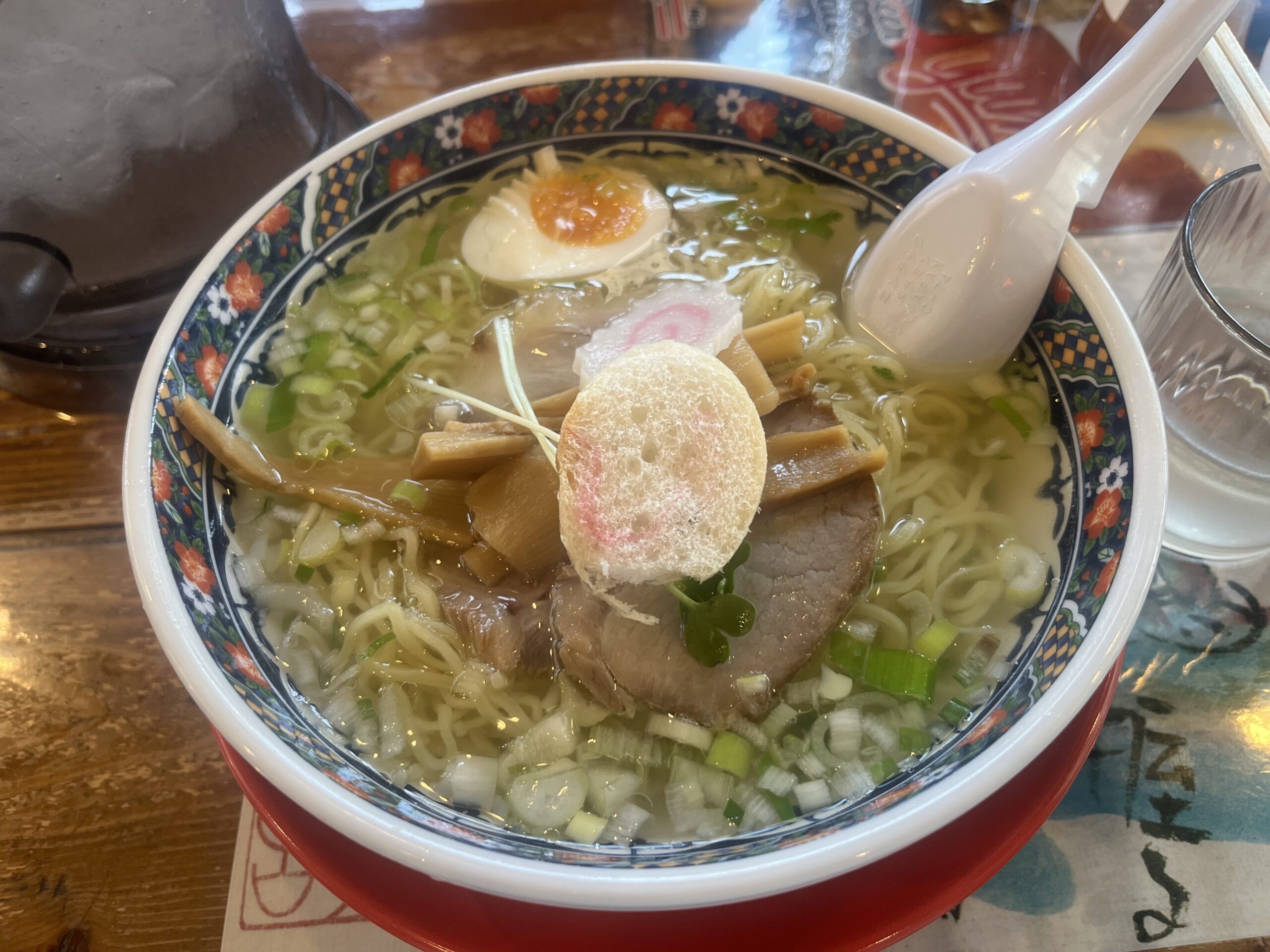 透き通ったスープは、あっさりだけとコクもあり、ストレート麺との相性も良く美味しかったです!