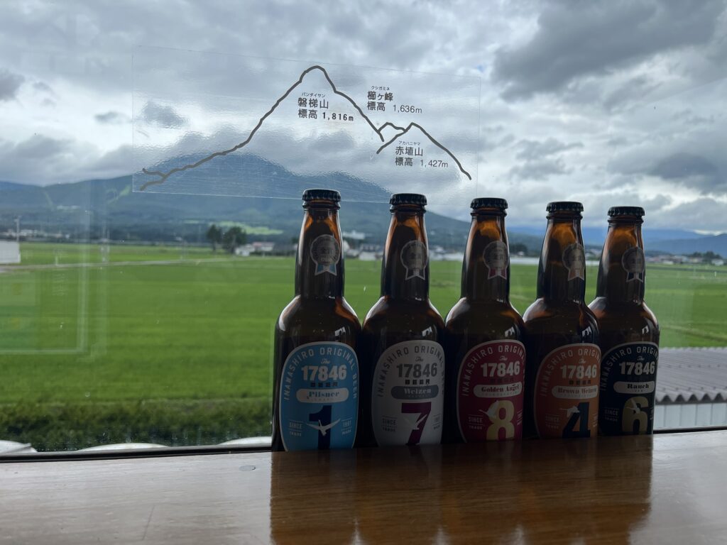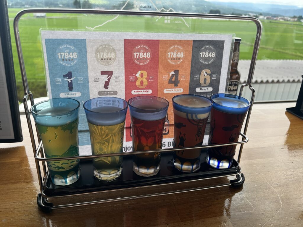 磐梯山を眺めながら、地ビール飲み比べセットを注文してみました(・∀・)