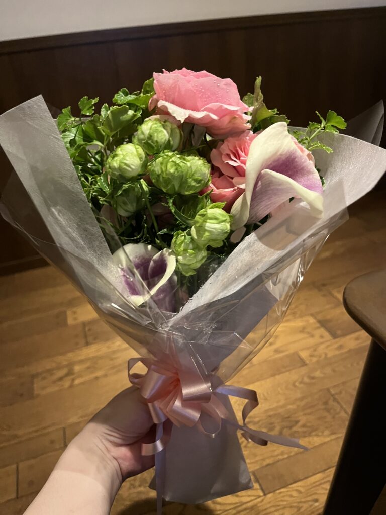 そして、実はのんとみぃにとっての記念日旅行ということで家族がアニバーサリーケーキと花束を予約してくれておりました(〃▽〃)ポッ